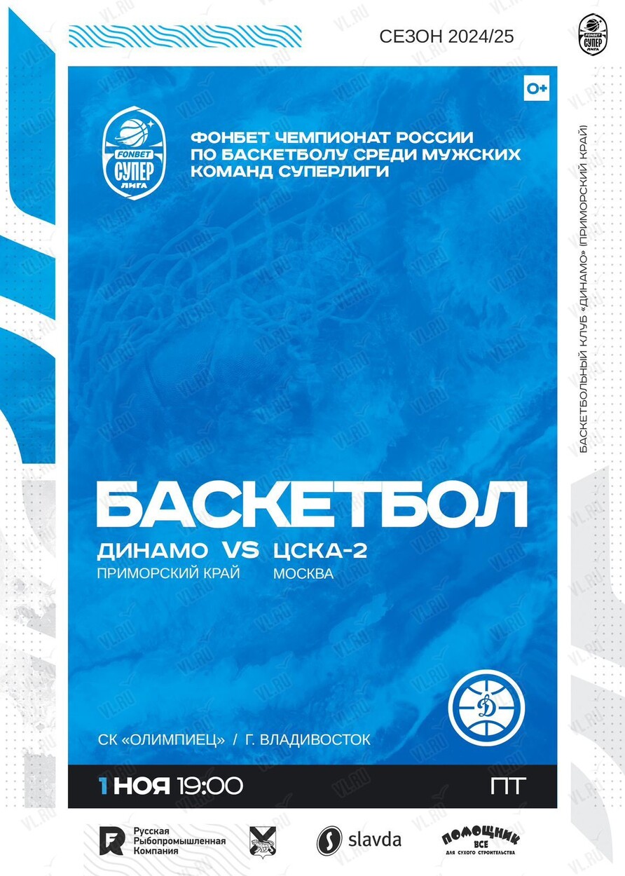 1 ноября в СК «Олимпиец» «Динамо» (Владивосток) примет «ЦСКА-2» (Москва)!
