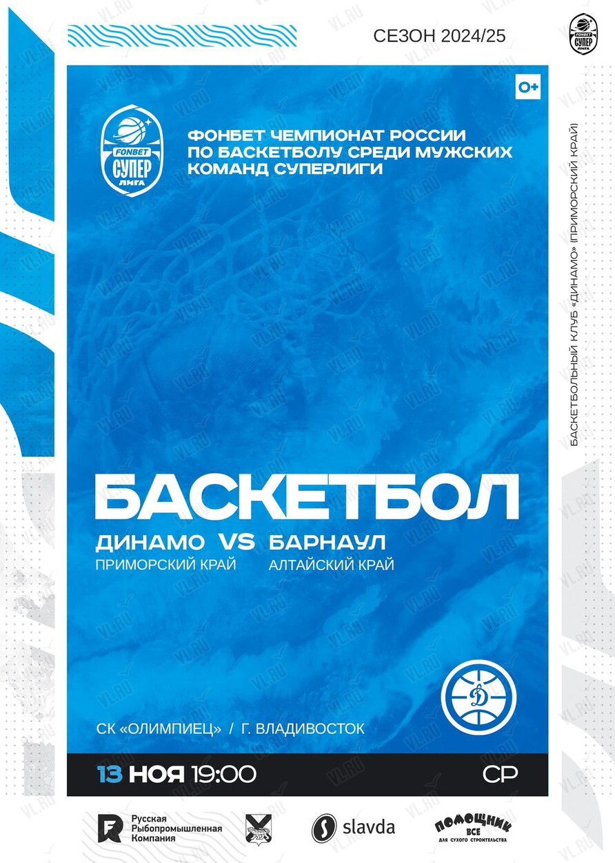 13 ноября в СК «Олимпиец» «Динамо» (Владивосток) примет «Барнаул» (Алтайский край)!