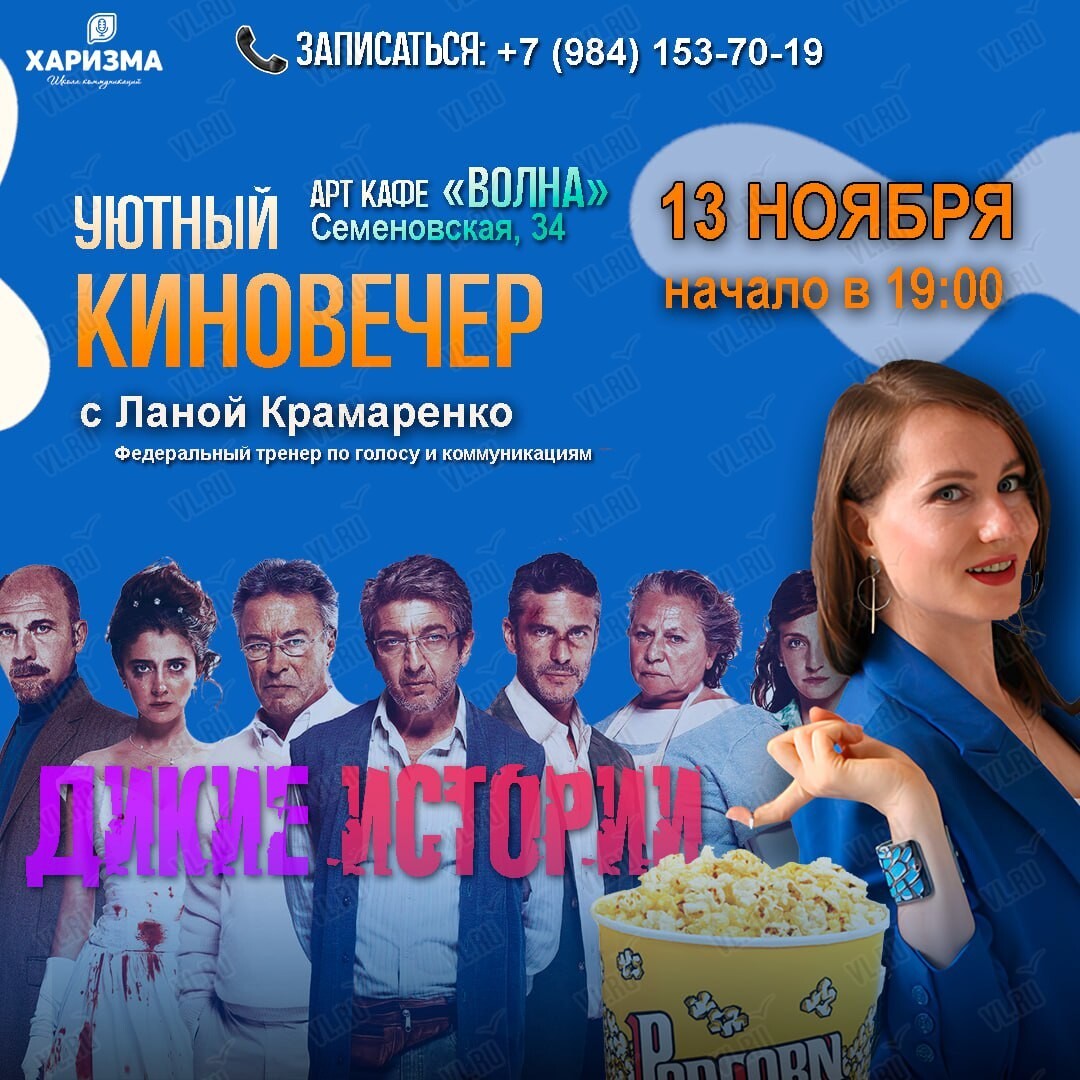 13 ноября в арт-кафе «Волна» пройдет киновечер с Ланой Крамаренко!