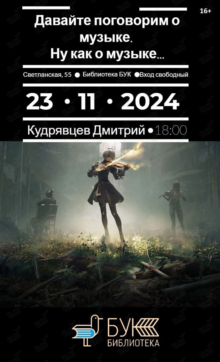 23 ноября в 18:00 в библиотеке БУК состоится лекция «Давайте поговорим о музыке». Ну как о музыке...