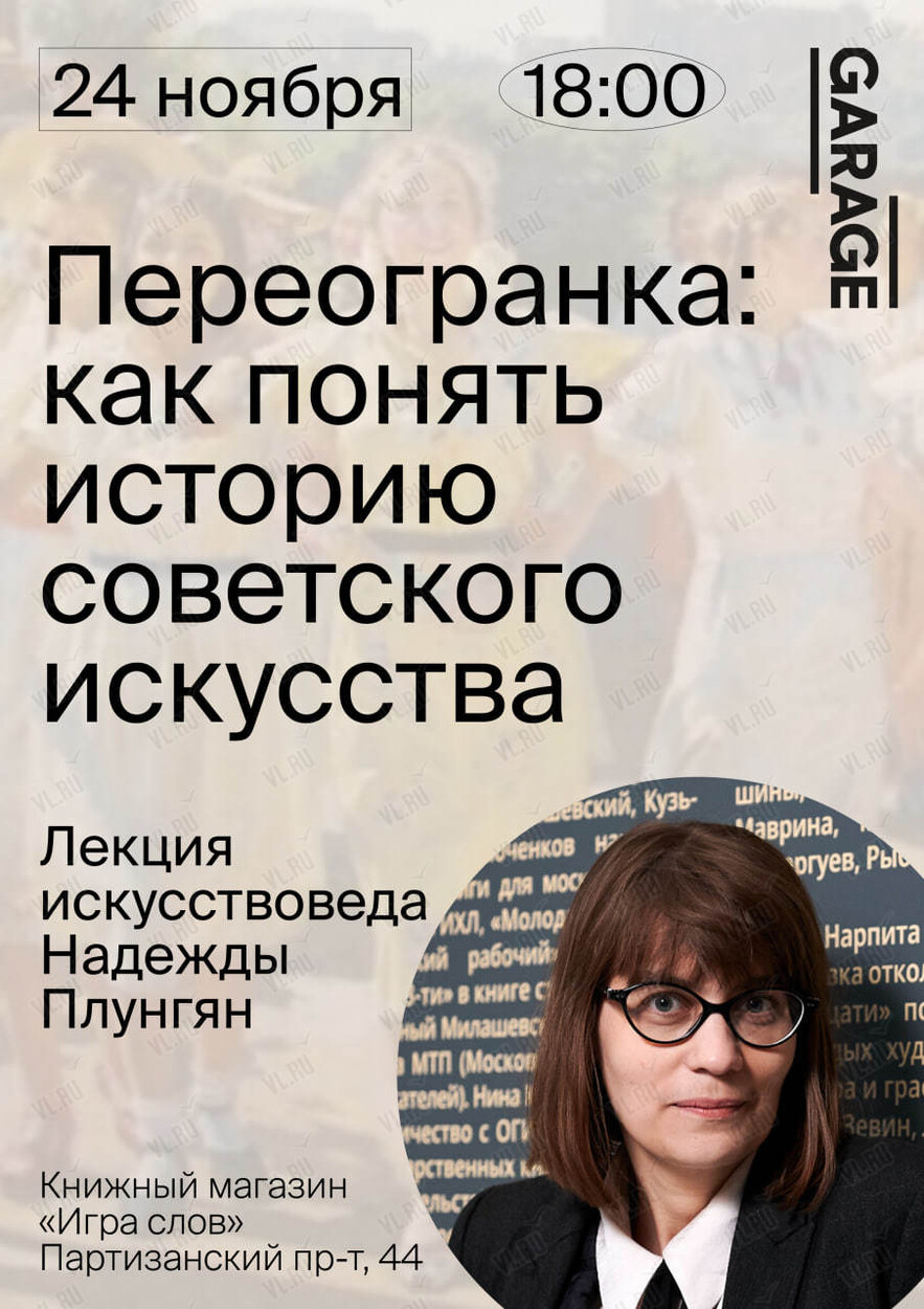 В воскресенье, 24 ноября, в книжном магазине «Игра слов» в рамках недели издательской программы музея «Гараж» состоится открытая лекция искусствоведа Надежды Плунгян.