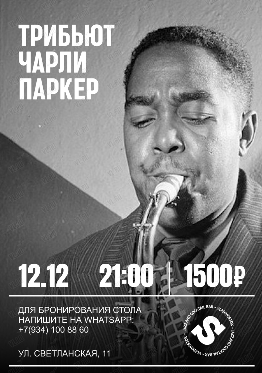 12 декабря на сцене джаз-бара Syncopa Трибьют Чарли Паркер.