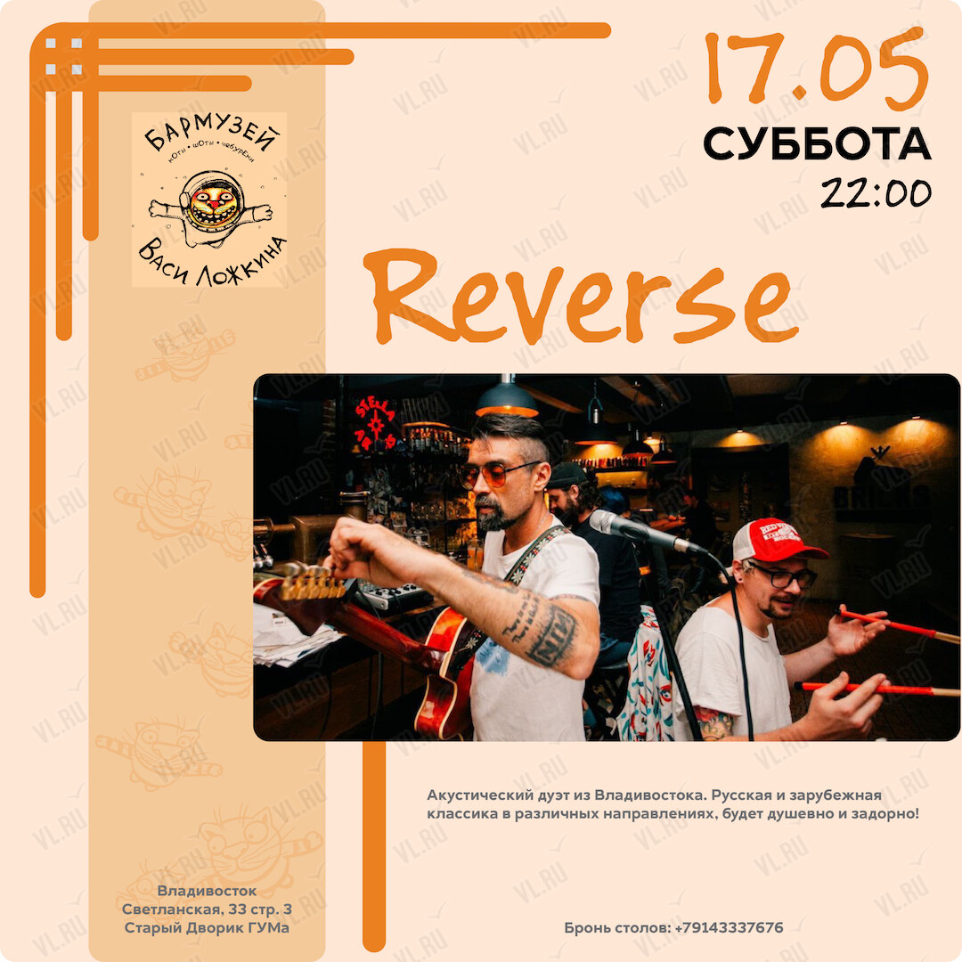 26 апреля и 17 мая в Бармузее Васи Ложкина выступит музыкальный дуэт Reverse!