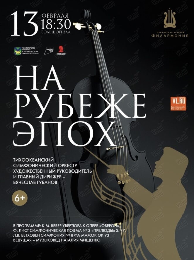 В программе: К.М. Вебер Увертюра к опере «Оберон», Ф. Лист Симфоническая поэма № 3 «Прелюды» S. 97, Л.В. Бетховен Симфония № 8 Фа мажор, op. 93