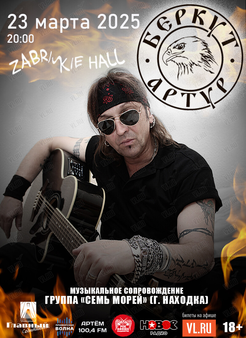 23 марта на сцене «Zabriskie Point» выступит Артур Беркут в сопровождении музыкантов проекта «Семь Морей» (концерт электрический)!