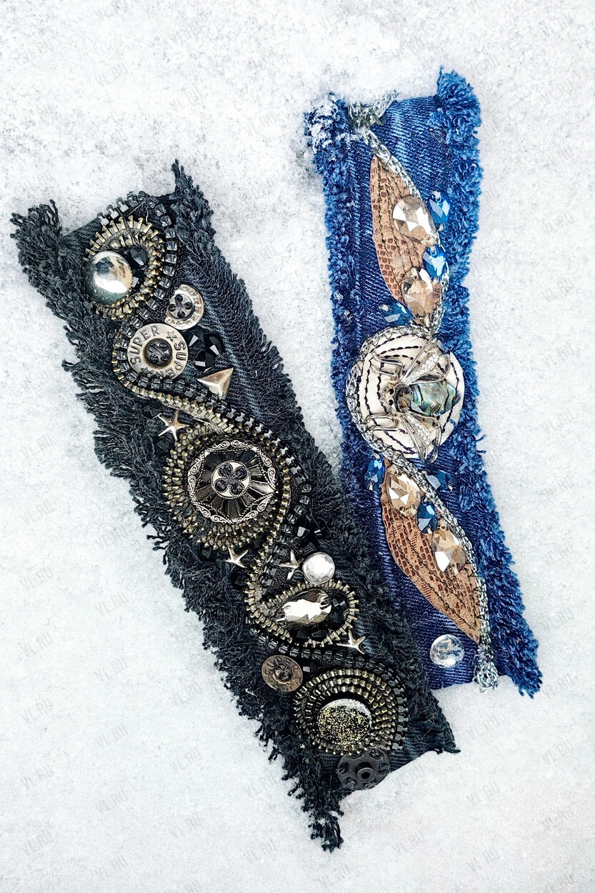 Из джинсовой ткани можно создать браслет или колье в любом стиле: от минимализма и бохо до гранжа и ар деко.