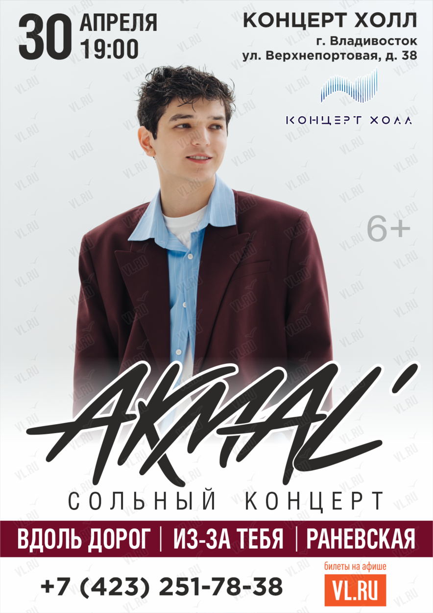 30 апреля на сцене «Концерт Холл» выступит певец Akmal'!