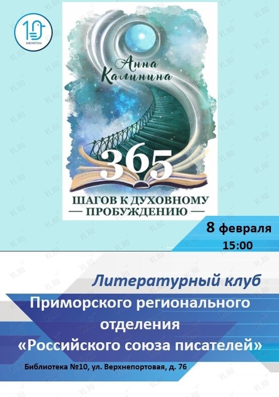 8 февраля в Библиотеке №10 состоится встреча Литературного клуба Приморского отделения «Российского союза писателей».