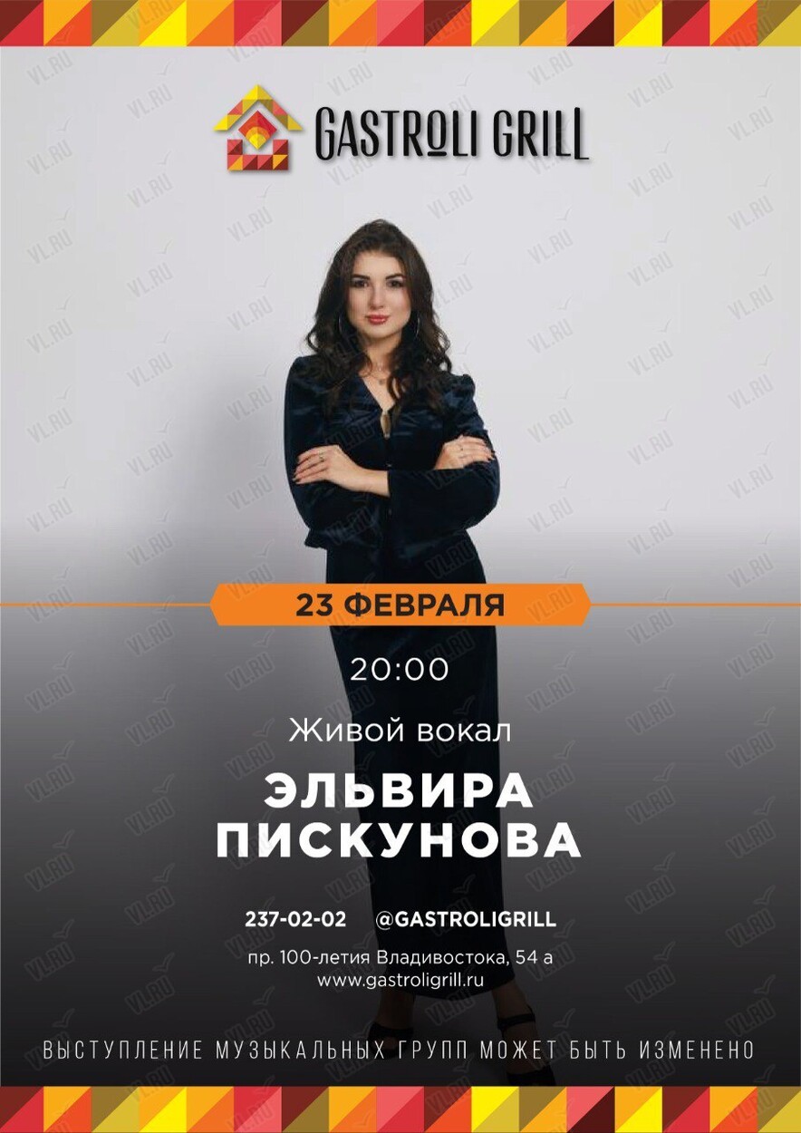 Gastroli grill приглашает на вечер живой музыки в честь 23 февраля!