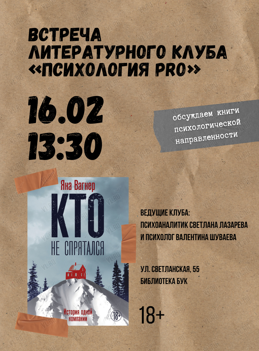 16 февраля в библиотеке БУК поговорим о книге Яны Вагнер «Кто не спрятался».