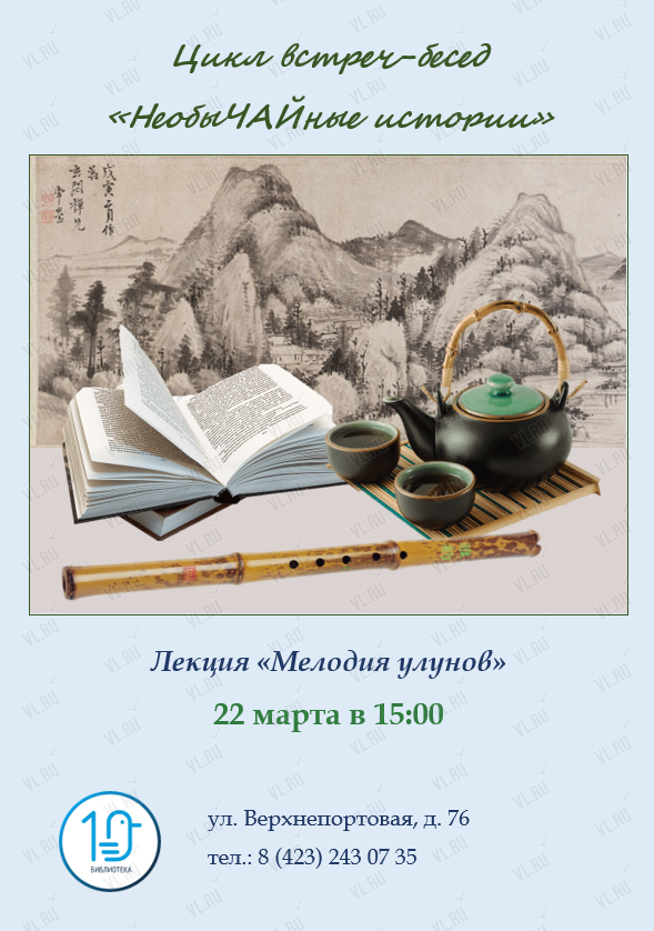 22 марта в 15.00 библиотека № 10 приглашает читателей и гостей города на лекцию-беседу «Мелодия улунов» из цикла НеобыЧАЙные истории».
