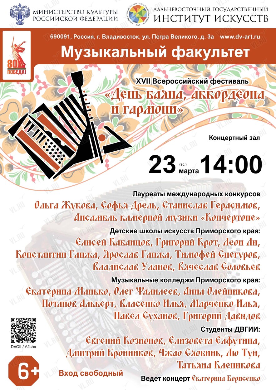 Дальневосточный государственный институт икусств приглашает на XVII Всероссийский фестиваль «День баяна, аккордеона и гармони».
