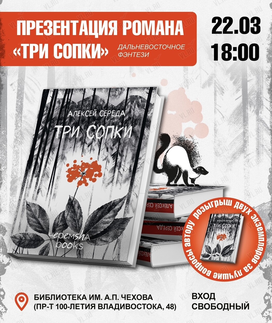 Издательство «Черемша» приглашает всех, кто любит природу, увлекается туризмом, мистикой, культурой и традициями родного края на презентацию захватывающего дальневосточного романа «Три сопки».