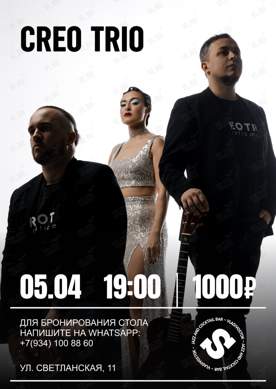 5 апреля на сцене джаз-бара Syncopa – Creo Trio!