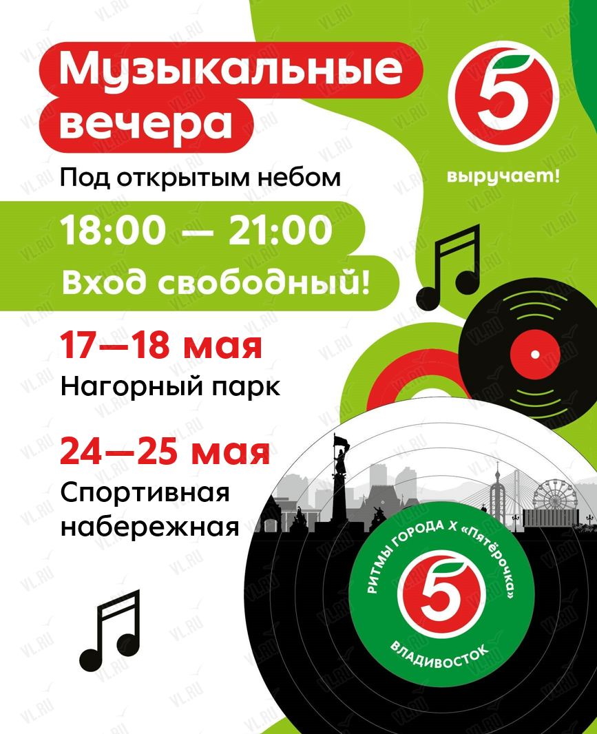17-18 и 24-25 мая во Владивостоке пройдут музыкальные вечера под открытым небом!