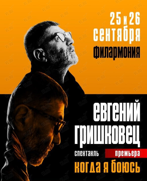 25 и 26 сентября на сцене Приморской краевой филармонии – Евгений Гришковец с программой «Когда я боюсь»!