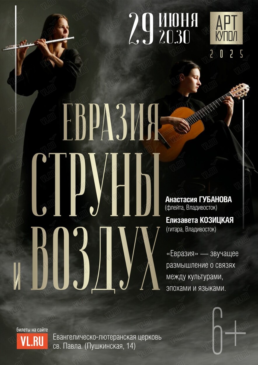 29 июня в пространстве Евангелическо-лютеранской Церкви Святого Павла камерный дуэт «Струны и Воздух» представит программу «Евразия» — звучащее размышление о связях между культурами, эпохами и языками.