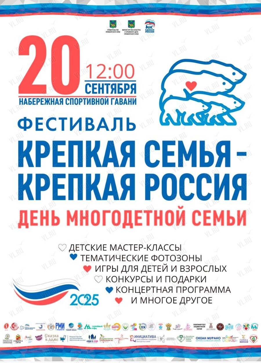 Центральным событием станет торжественное шествие семей, в котором примут участие многодетные семьи со всех уголков Приморского края. Место сбора для всех желающих присоединиться к шествию Батарейная 3, стр.2.