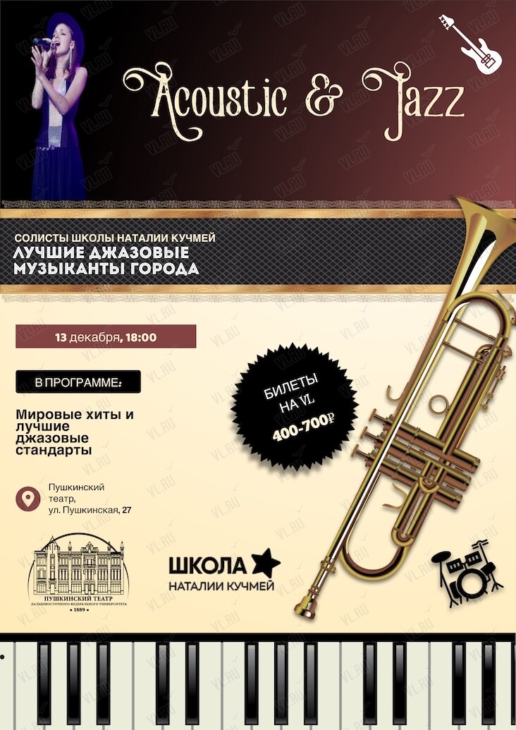 13 декабря в 18:00 на сцене Пушкинского театра состоится концерт солистов Школы в сопровождении лучших джазовых музыкантов города - Acoustic and Jazz.