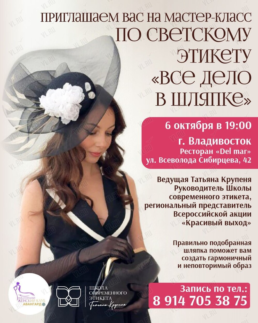 Вы зарегистрированы на событие «Мастер-класс по светскому этикету «Все дело в шляпке»», на 6 октября 19:00