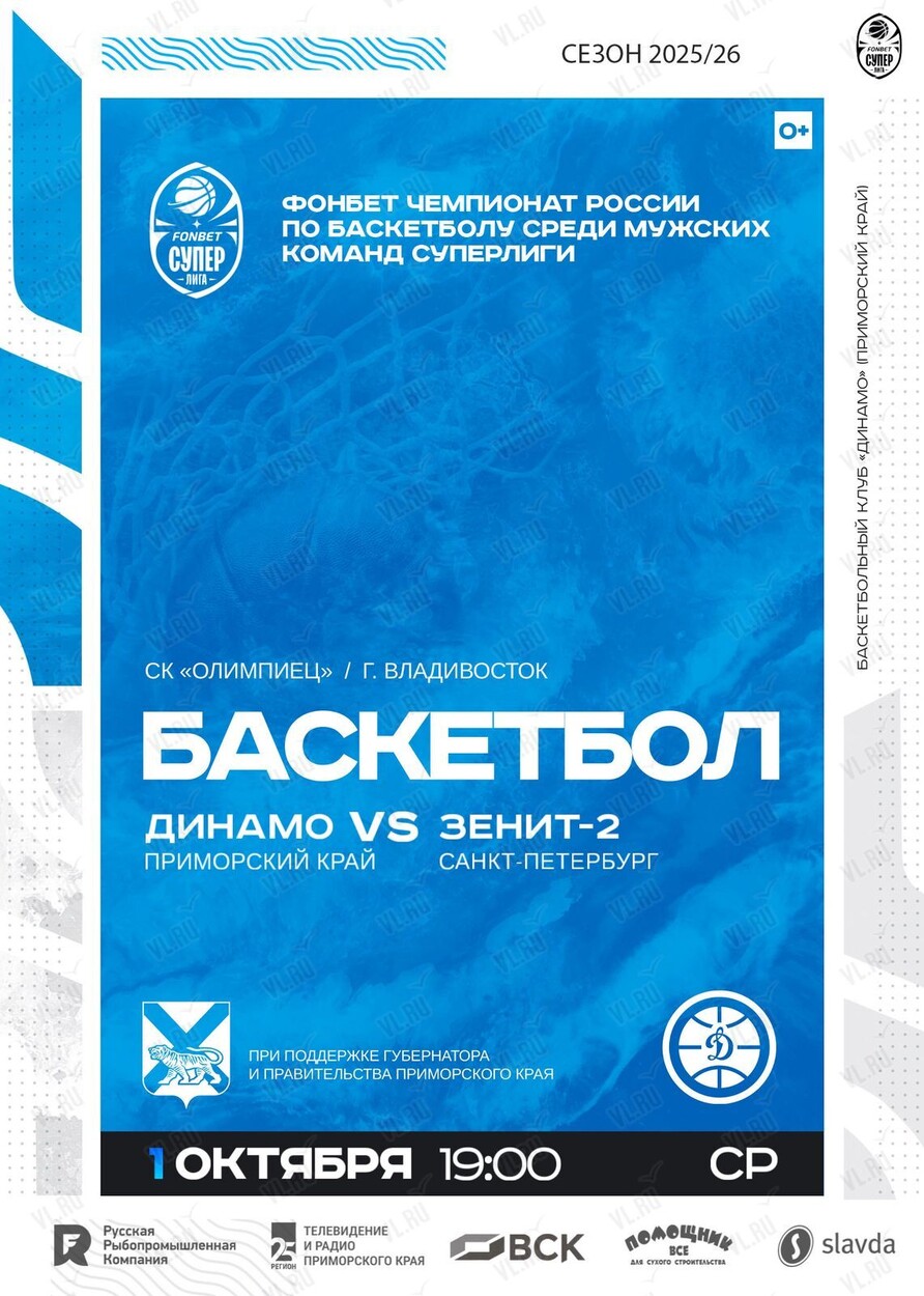 1 октября в СК «Олимпиец» БК «Динамо» (Владивосток) примет «Зенит-2 »(Санкт-Петербург)!