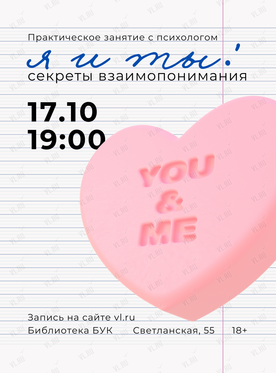 17 октября в 19:00 в библиотеке БУК состоится практическое занятие с психологом «Я и ты: секреты взаимопонимания».
