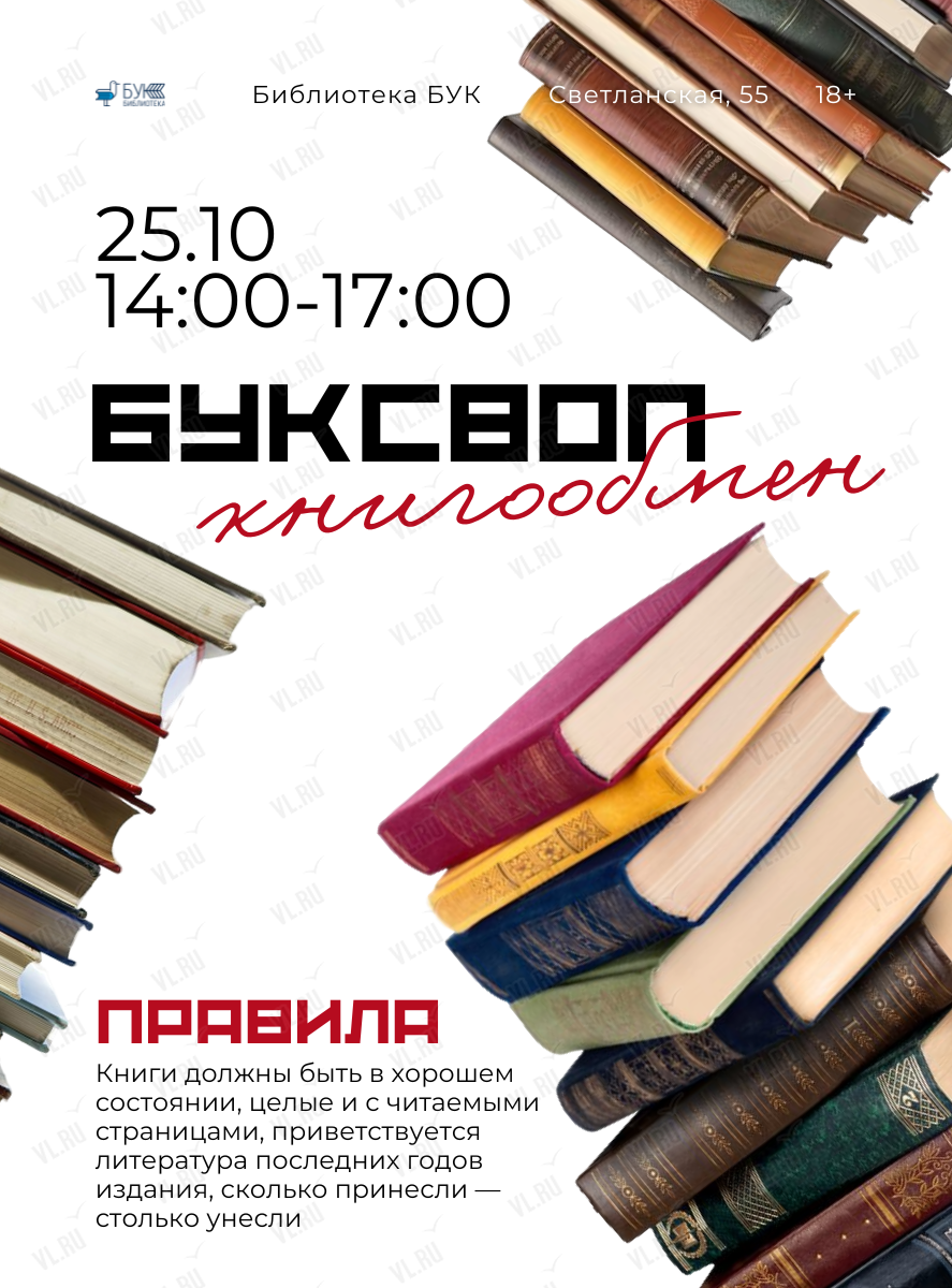 25 октября в библиотеке БУК развернётся БУКсвоп (свободный книгообмен)!
