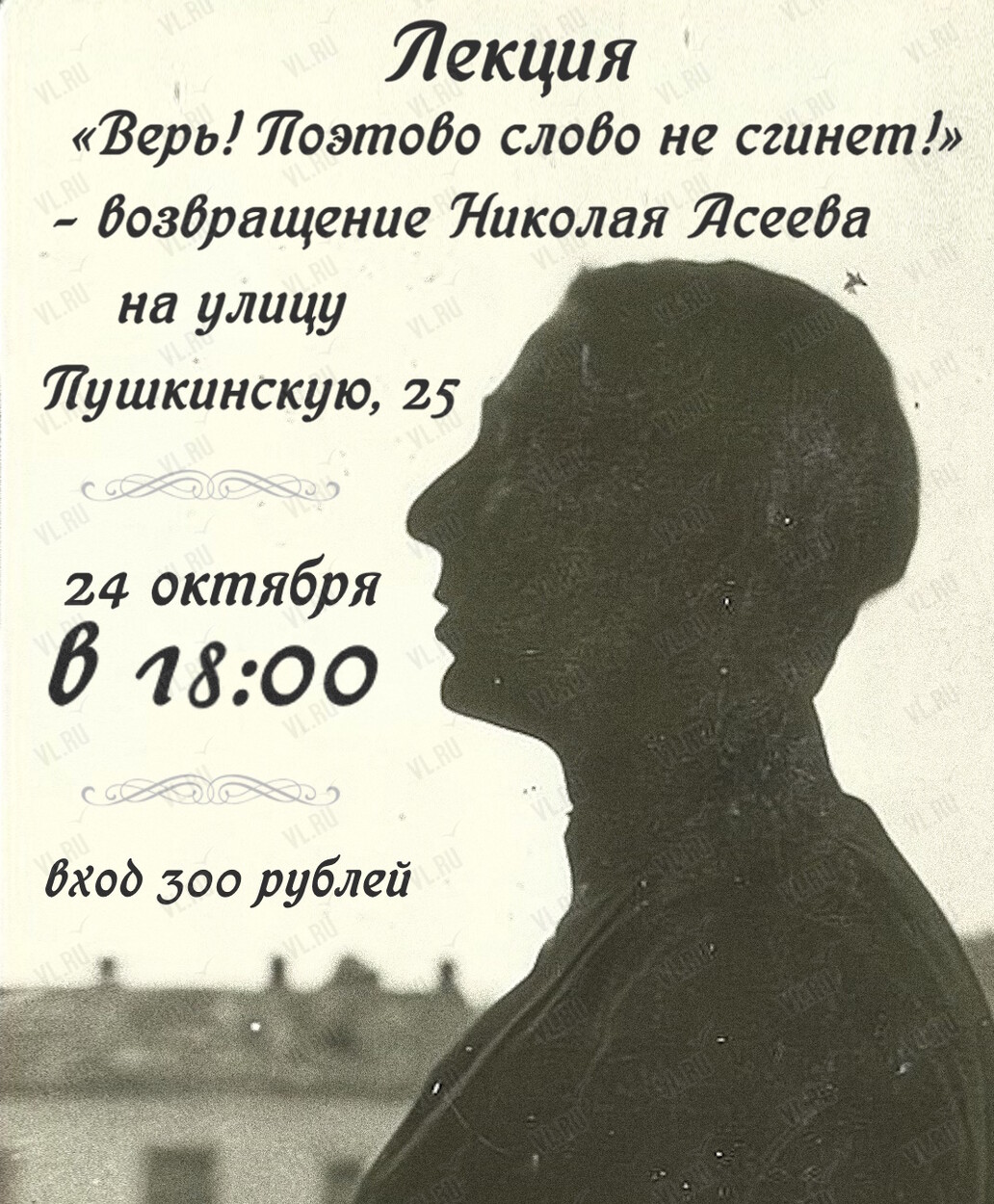 Вы зарегистрированы на событие «Лекция: «Верь! Поэтово слово не сгинет!» - возвращение Николая Асеева на улицу Пушкинскую, 25», на 24 октября 18:00