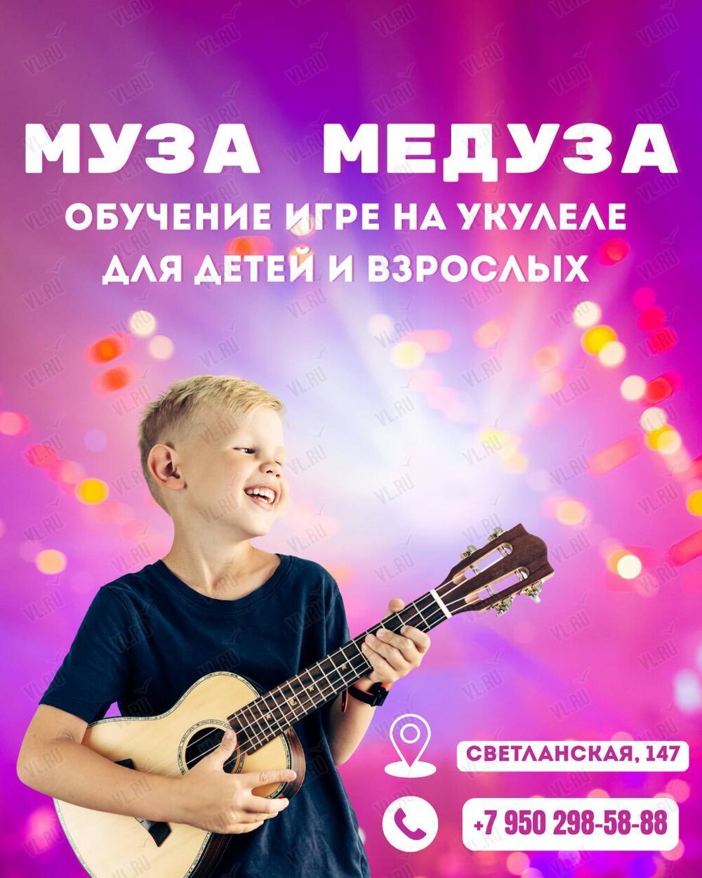 Школа вокала и музыки «Муза Медуза» приглашает детей и взрослых на обучение игре на укулеле.