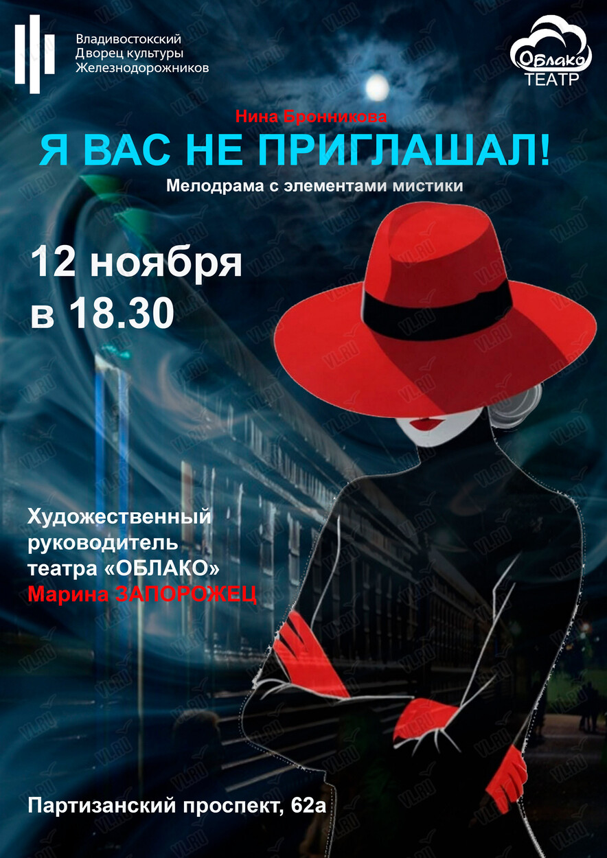 Театр «Облако» представит 12 ноября на сцене Дворца железнодорожников спектакль «Я вас не приглашал» по пьесе Нины Бронниковой.