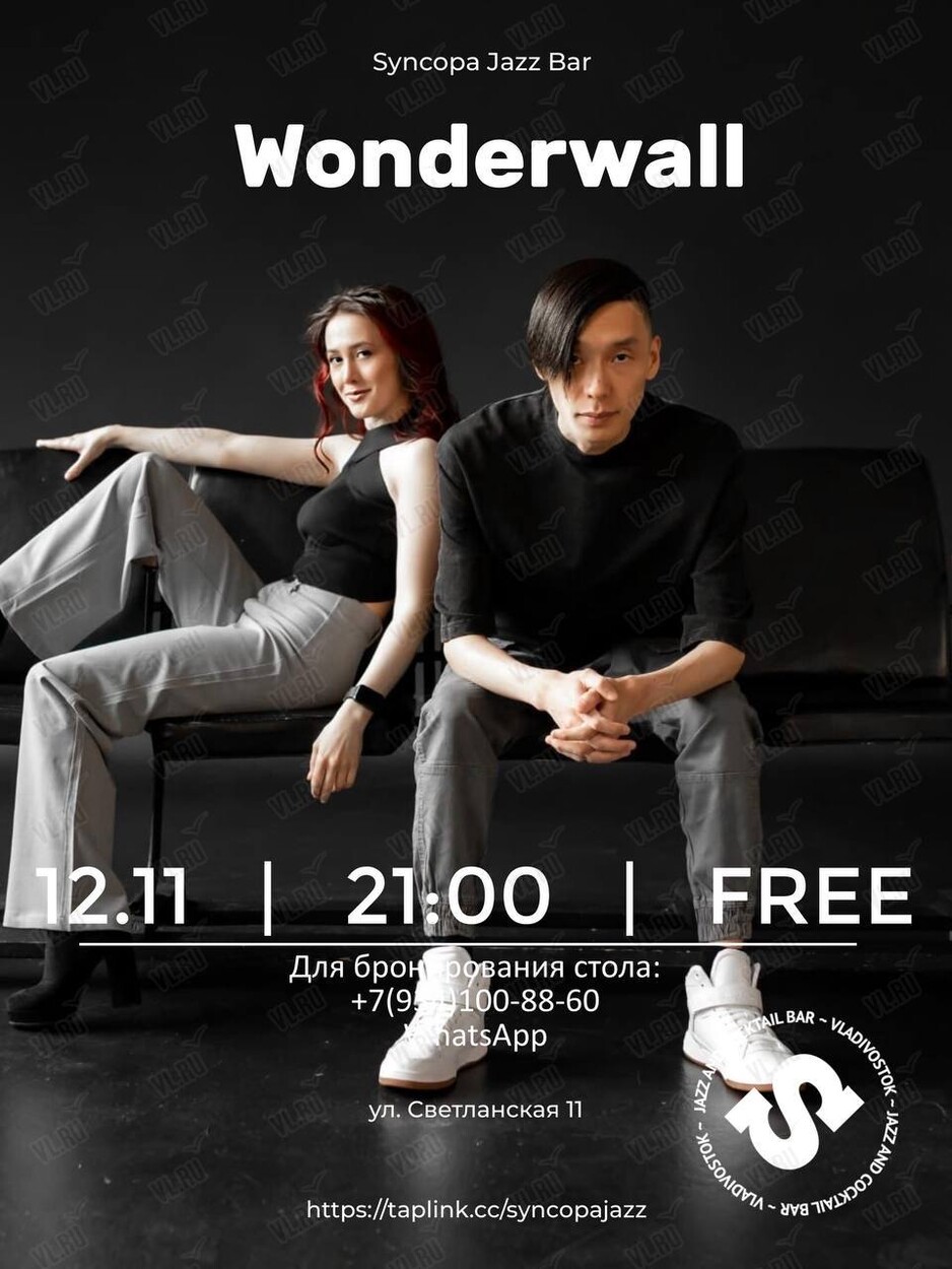 12 ноября на сцене джаз-бара Syncopa выступит Wonderwall!