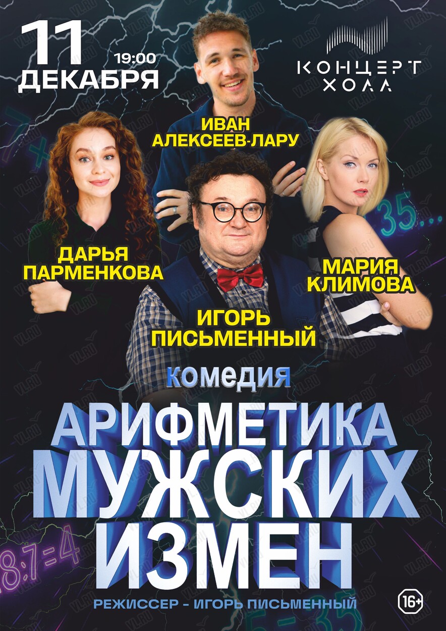 11 декабря на сцене «Концерт Холл» – спектакль «Арифметика мужских измен»!