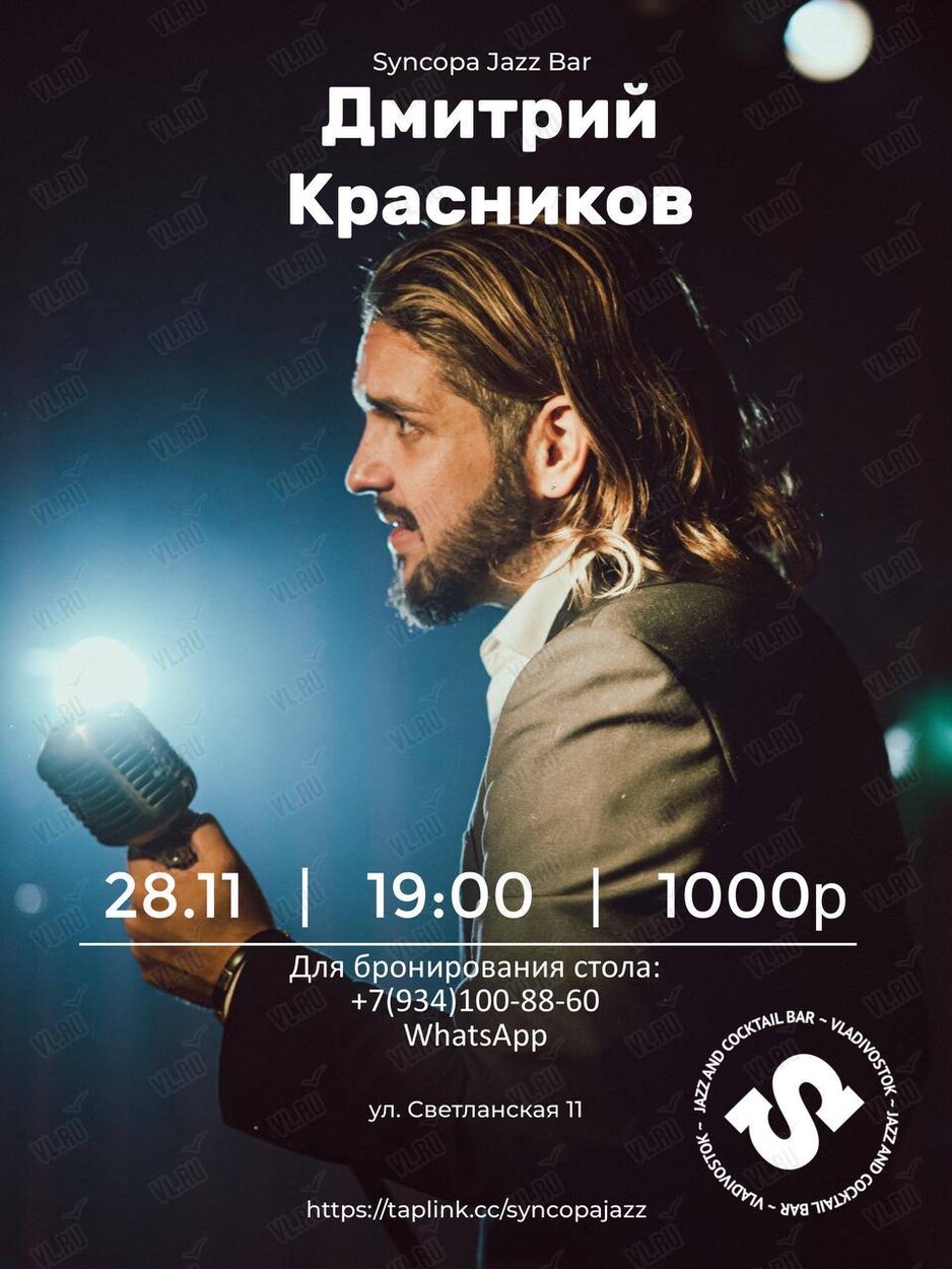 28 ноября на сцене джаз-бара Syncopa выступит Дмитрий Красников!
