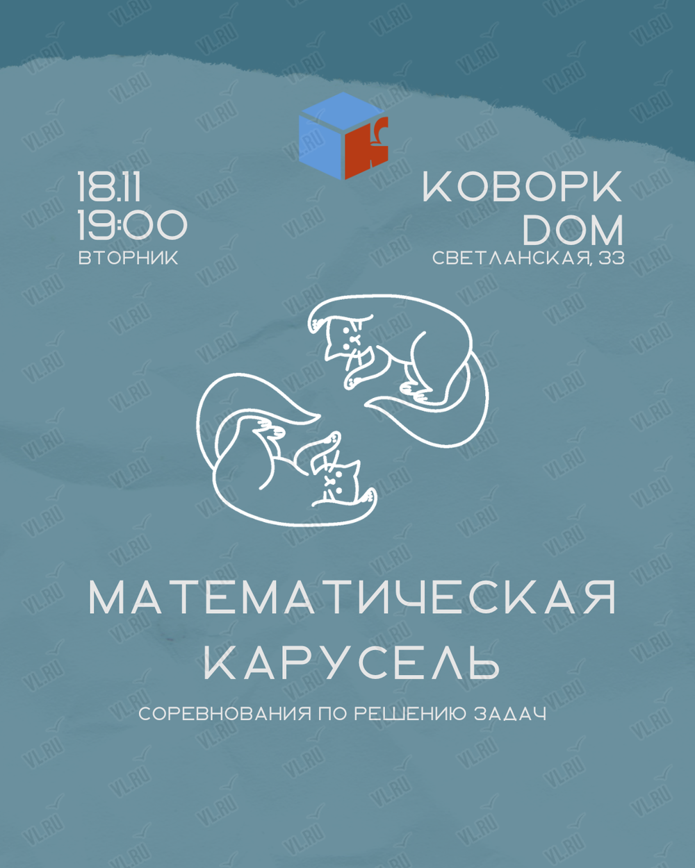 Во вторник, 18 ноября, в коворкинге DOM в рамках математического клуба пройдёт «Математическая карусель» – это будет соревнование по решению задач из математического флешмоба MathCat прошлых лет.