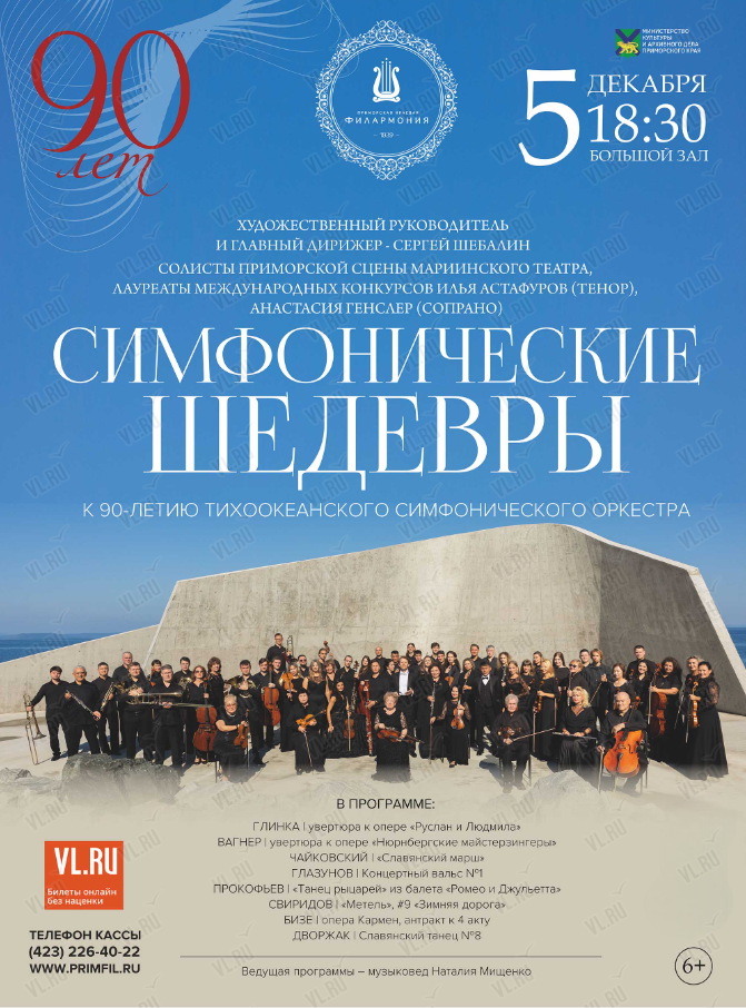 Художественный руководитель и главный дирижер – Сергей Шебалин.Солисты Приморской сцены Мариинского театра, лауреаты международных конкурсов Илья Астафуров (тенор), Анастасия Генслер (сопрано)