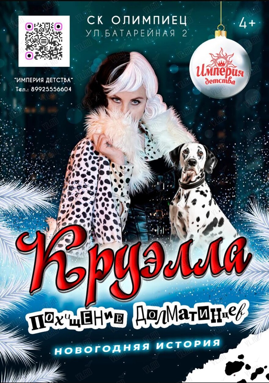 «Империя детства» приглашает 27 декабря на новогоднее шоу «Круэлла. Похищение далматинцев»!