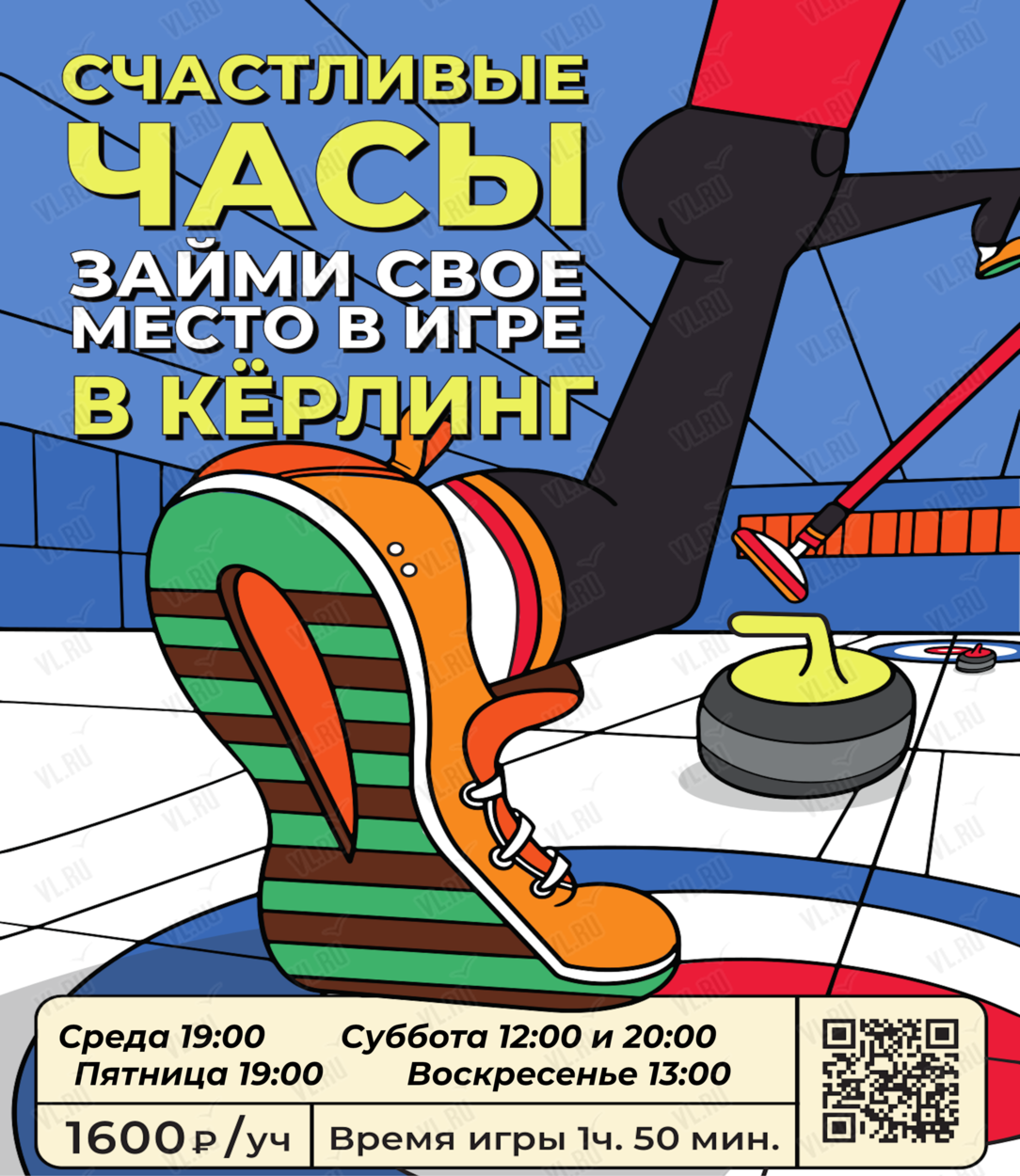 Счастливые часы – это возможность поиграть в кёрлинг с инструктором в группе до 10 человек.