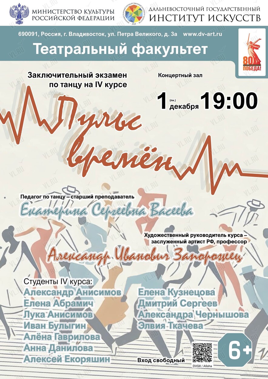 1 декабря в концертном зале ДВГИИ пройдет Заключительный экзамен по танцу на IV курсе театрального факультета ДВГИИ!
