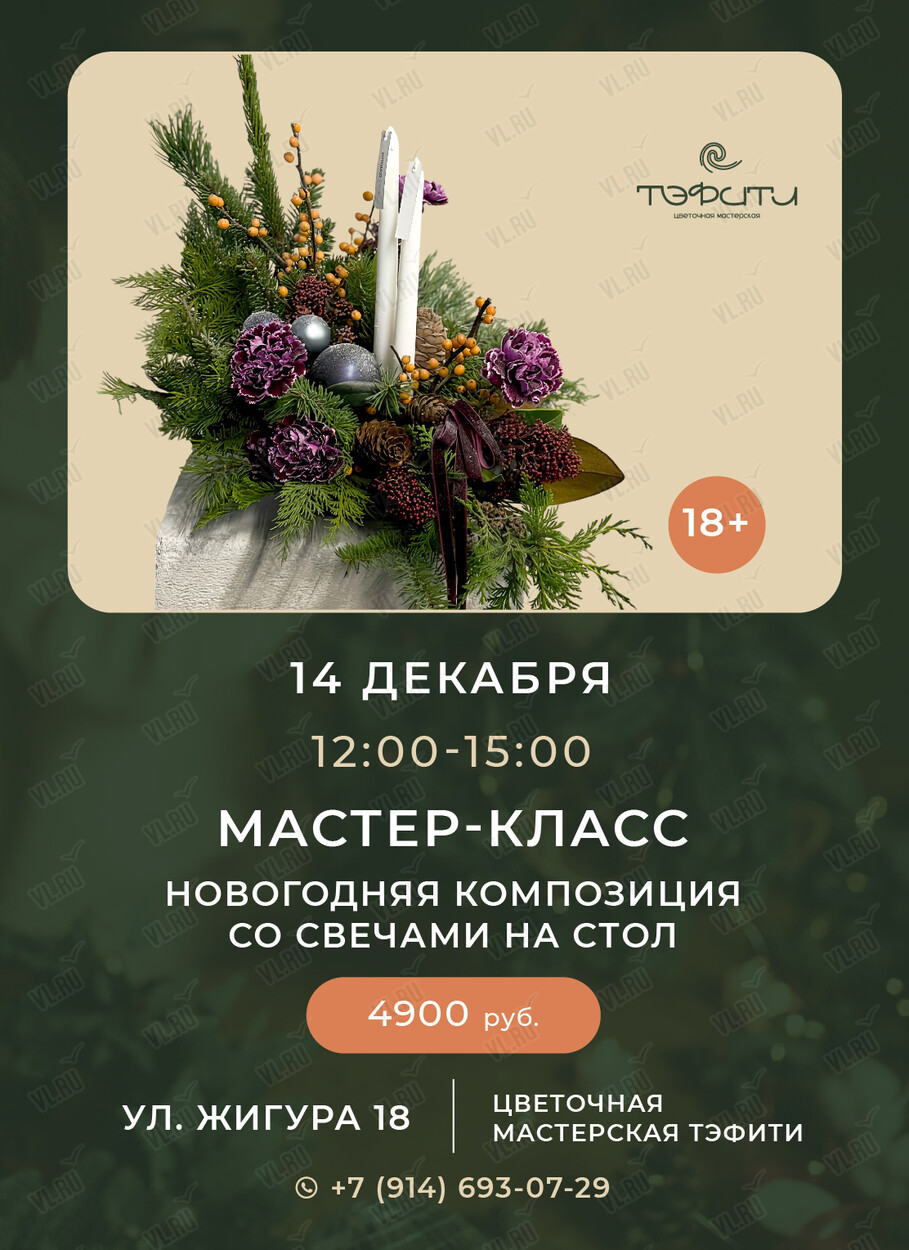 Цветочная мастерская «Тэфити» приглашает на мастер-класс «Новогодняя композиция со свечами на стол»!