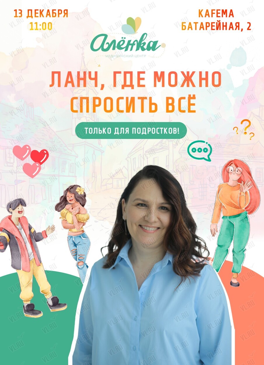 В рамках проекта «Ланч, где можно спросить всё», семейная клиника «Алёнка» приглашает подростков на встречу c доктором эндокринологом Натальей Николаевной Бочарниковой, где можно будет открыто и доверительно поговорить о самых деликатных вопросах, которые часто неловко обсуждать с родителями.