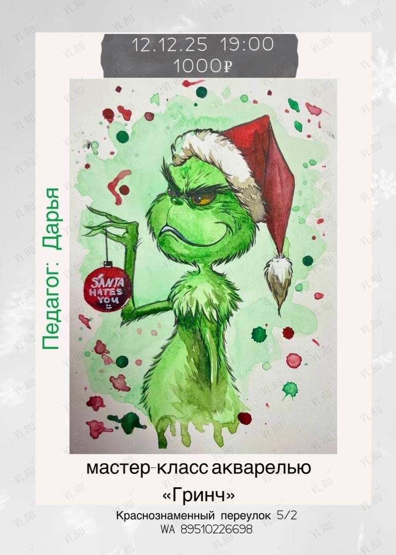 Творческая студия Art inside приглашает на уютный мастер-класс, где мы напишем самого озорного и обаятельного героя зимы — Гринча!