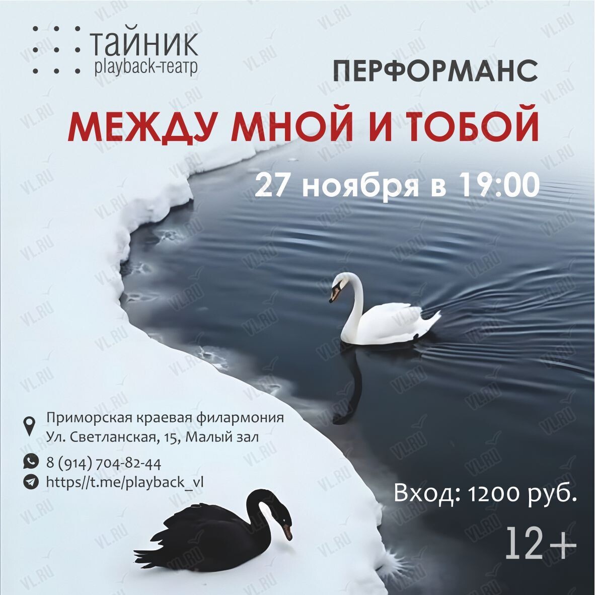 27 ноября на малой сцене Приморской филармонии плейбэк-театр «Тайник» представит перформанс «Между мной и тобой»!