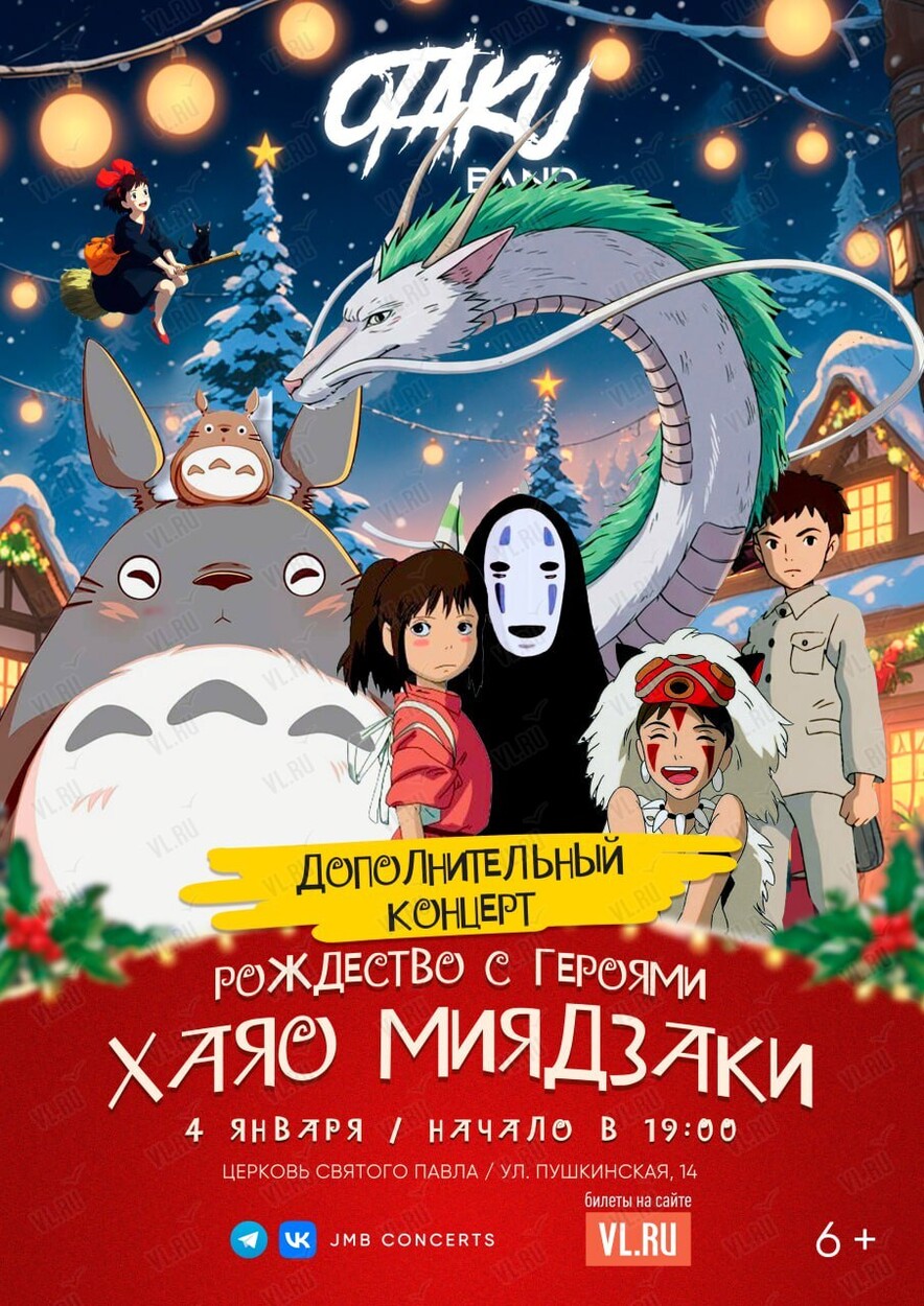 4 января на сцене Церкви святого Павла – дополнительный концерт ансамбля Otaku Band с программой «Рождество с героями Хаяо Миядзаки»!