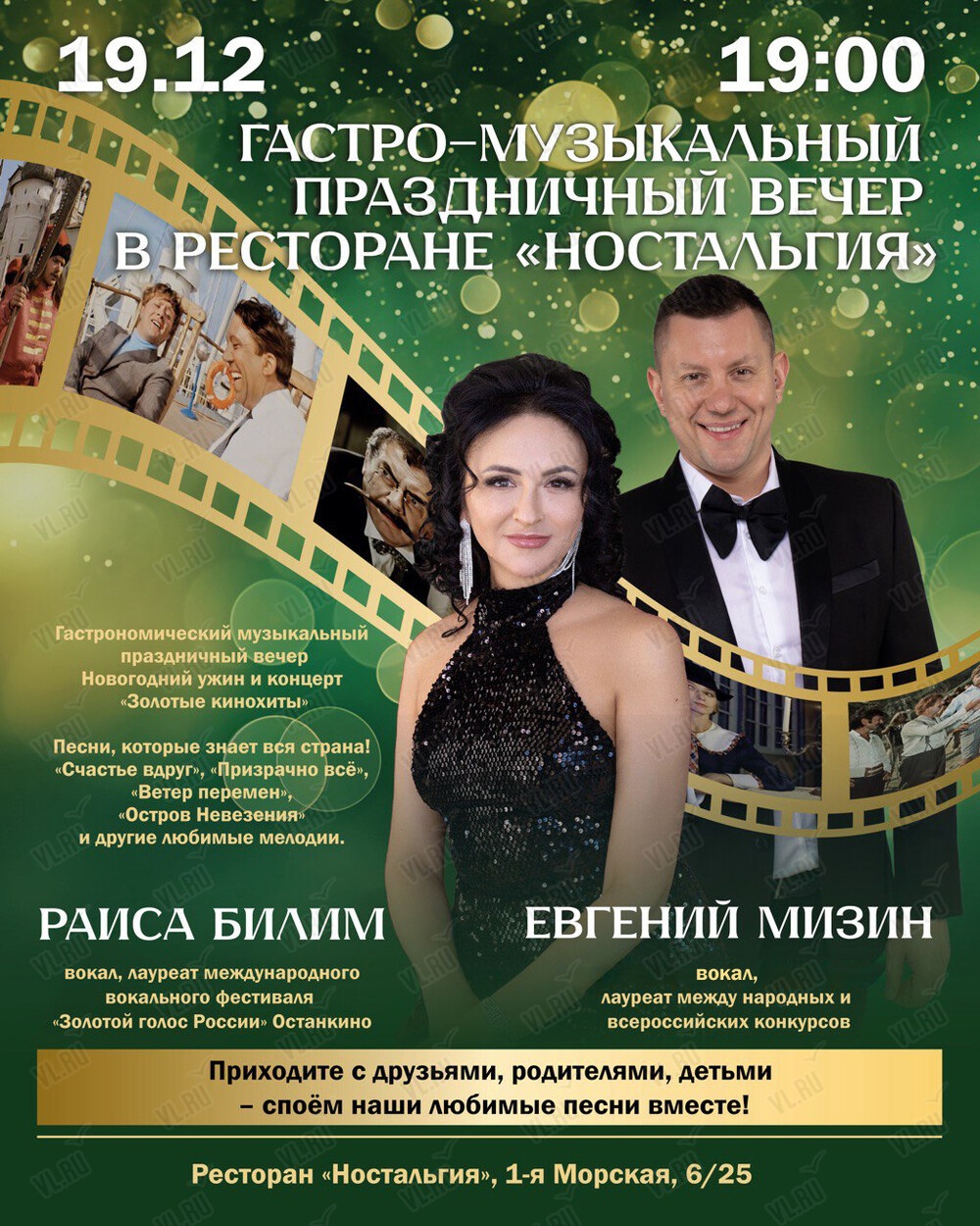 19 декабря в ресторане «Ностальгия» пройдет праздничный гастро-музыкальный вечер «Золотые кинохиты».