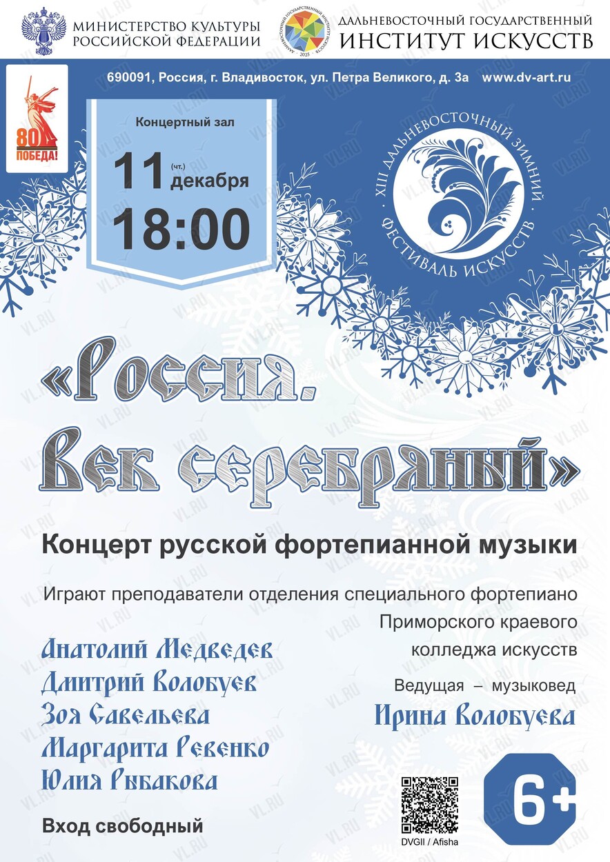 11 декабря в рамках XIII Дальневосточного зимнего Фестиваля искусств пройдет концерт «Россия. Век серебряный»!