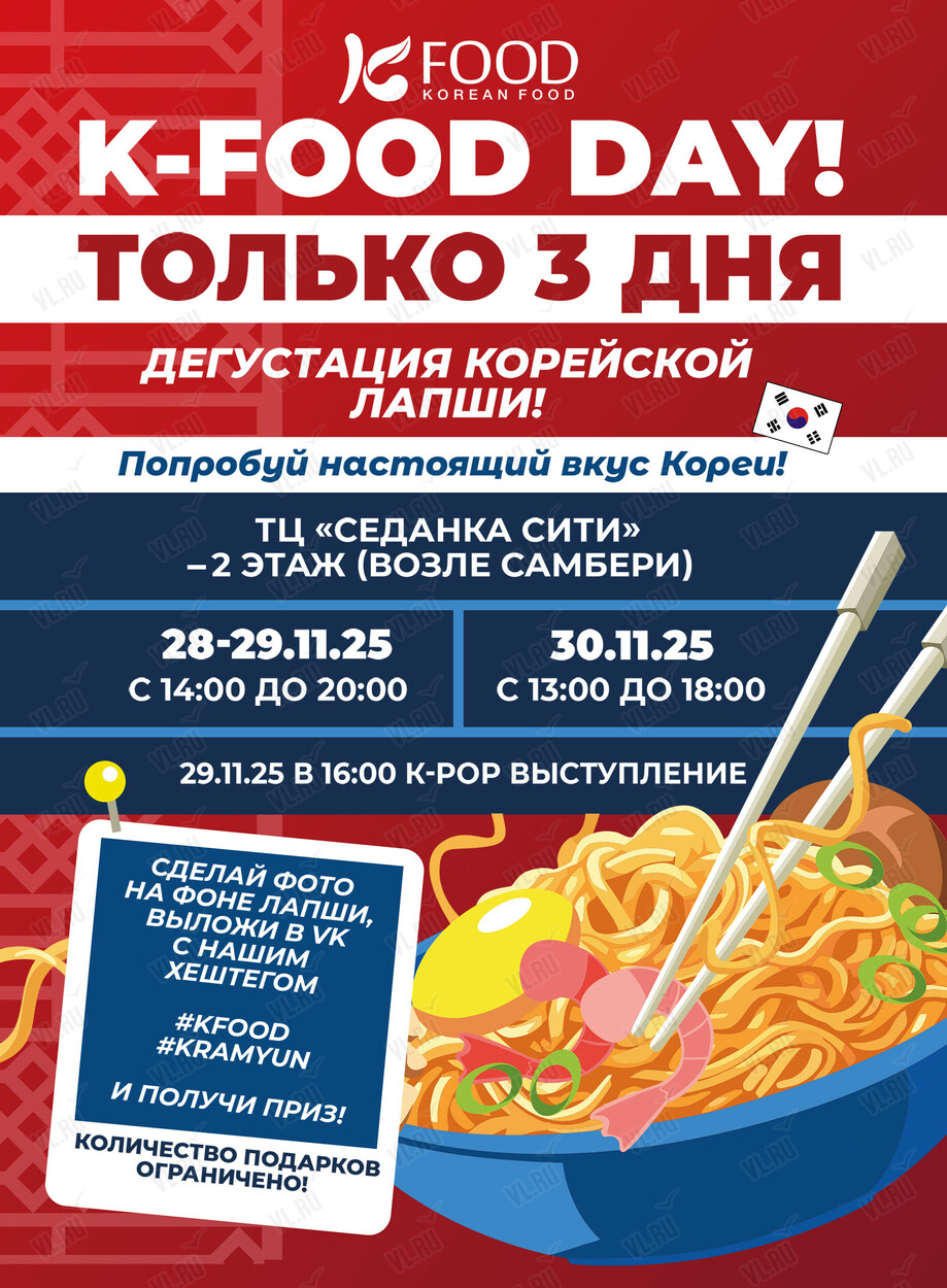 28-30 ноября на -2 этаже ТРК «Седанка Сити» состоится дегустация южнокорейской продукции!
