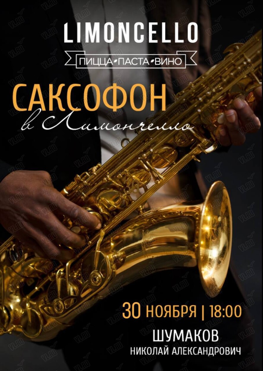 В воскресенье, 30 ноября, в ресторане Limoncello – Вечер живой музыки: романтичный саксофон!