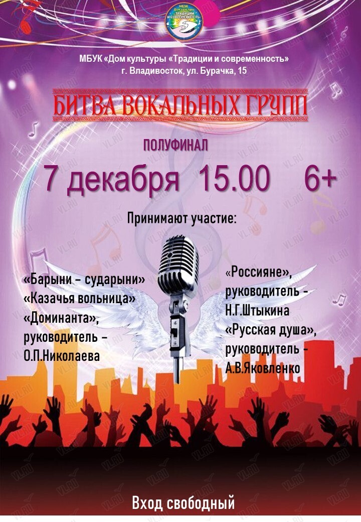 МБУК «Дом культуры "Традиции и современность"» приглашает 7 декабря на проект «Битва вокальных групп»!