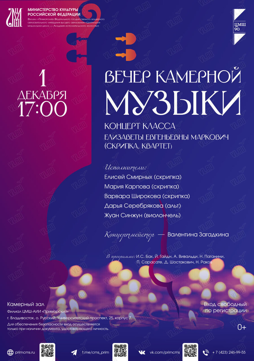 Регистрация на событие «Вечер камерной музыки», на 1 декабря 17:00 отменена.