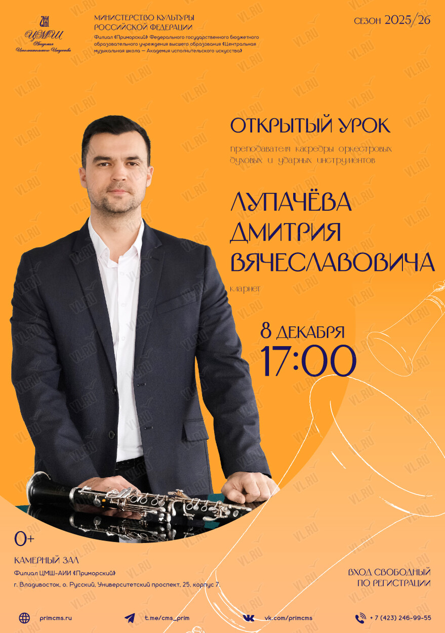 Вы зарегистрированы на событие «Открытый урок преподавателя Лупачёва Дмитрия Вячеславовича (кларнет)», на 8 декабря 17:00